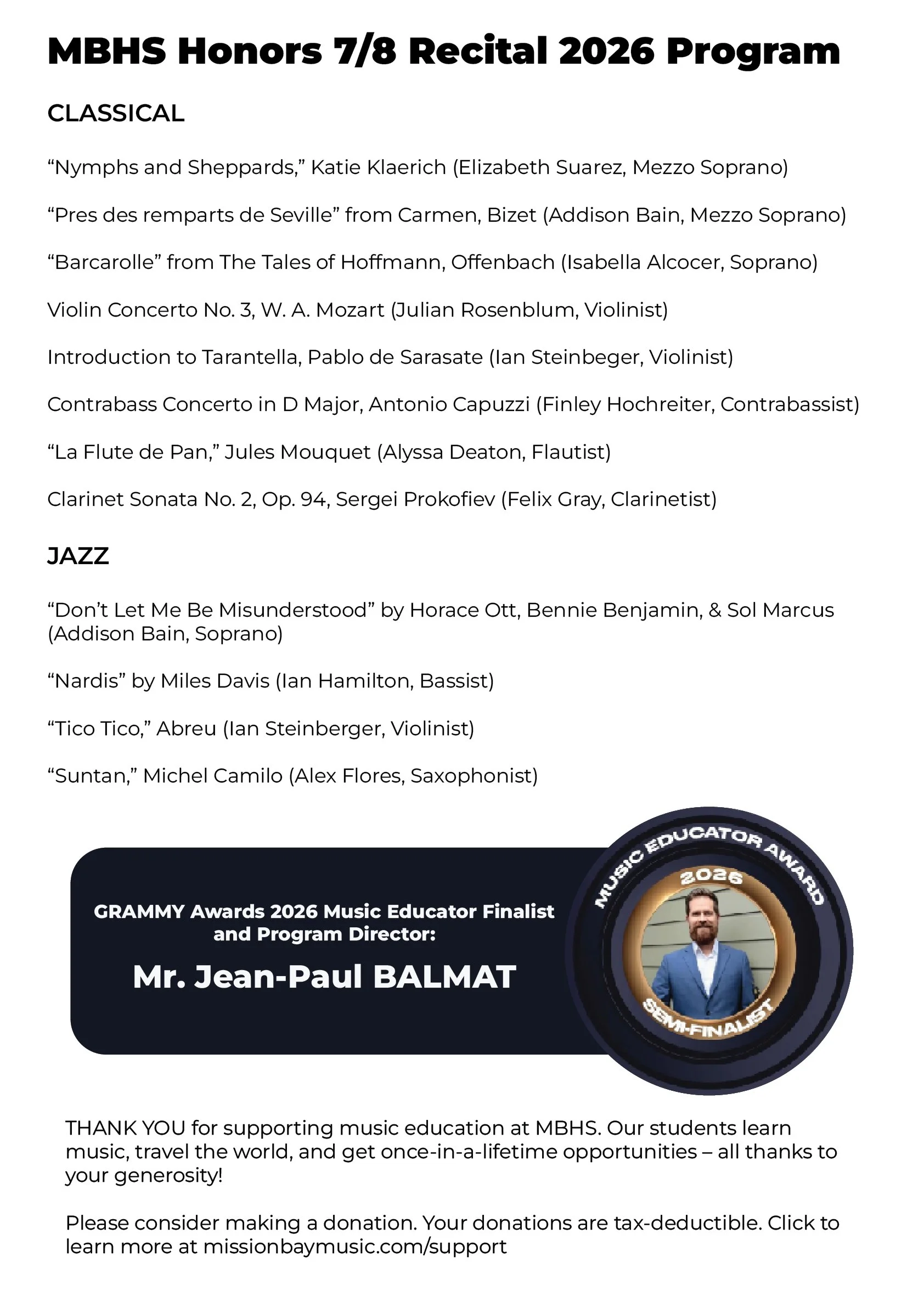 Don’t miss our amazing students perform with their ensembles: